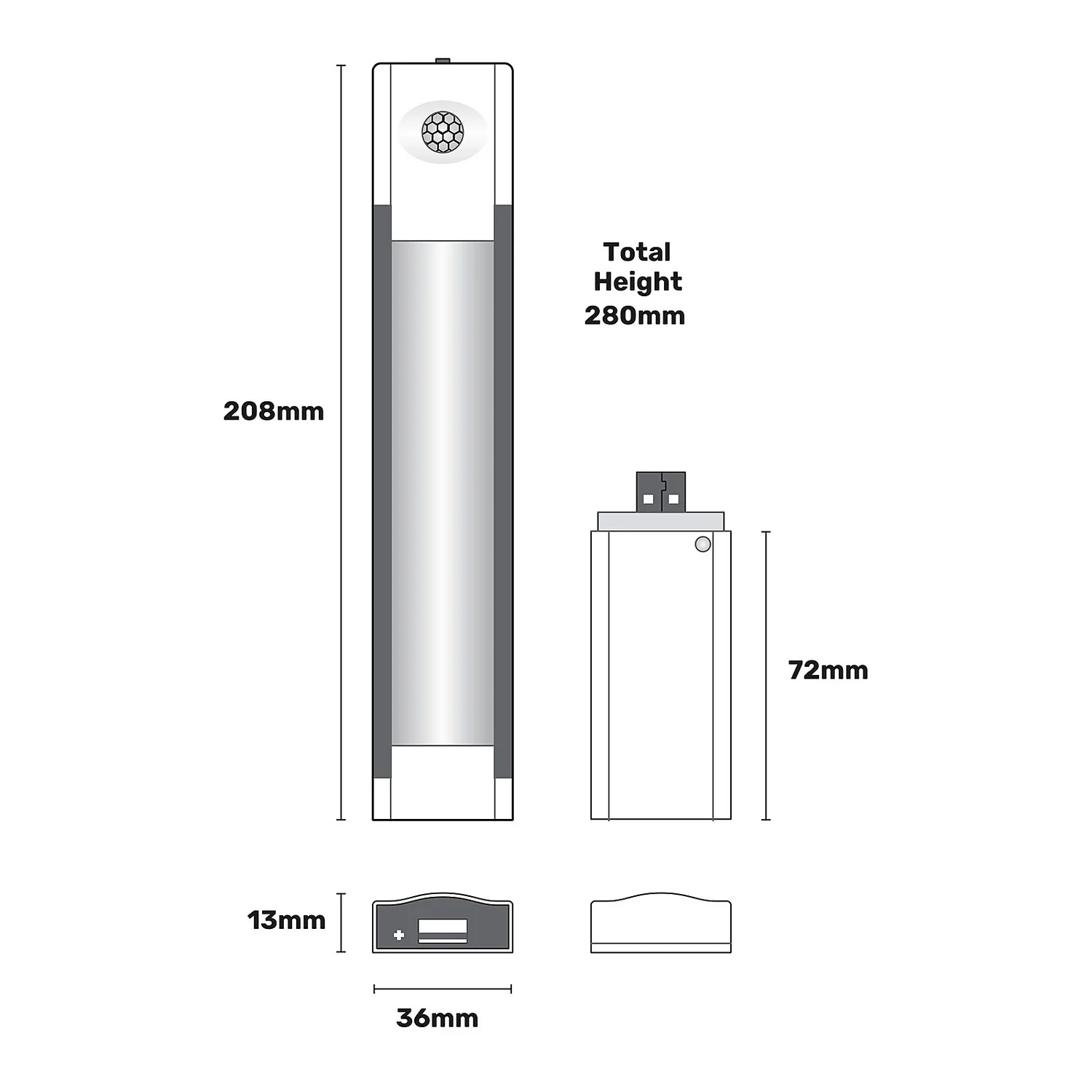 - Includes USB battery pack allows for easy recharging with any USB ports.