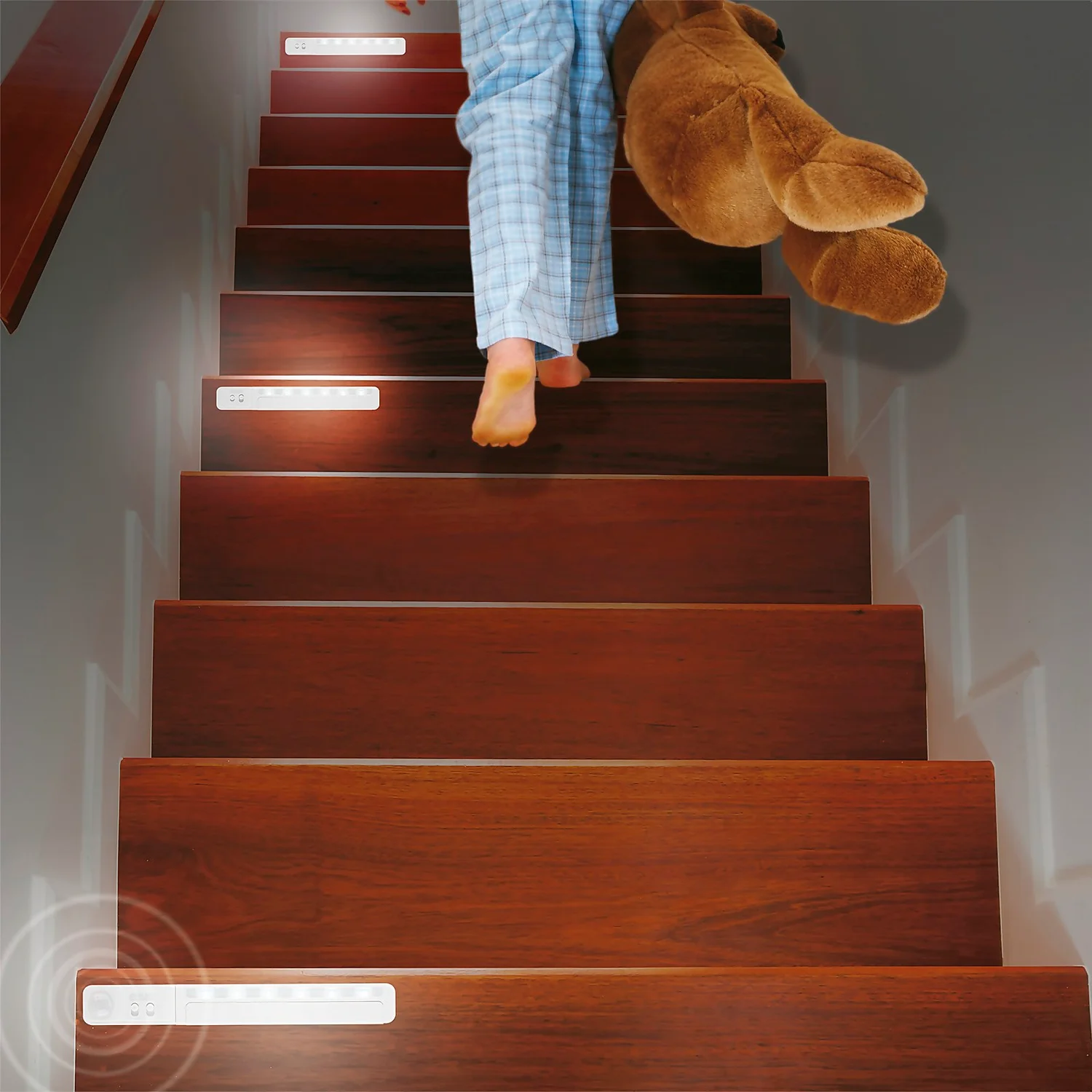 The Wireless Linkable Sensor LED Light Kit illuminates your home without the need for wires with linkable lights making it ideal for Stairways, Bathrooms, Wardrobes, Hallways, Bedrooms and Under Cabinets. The kit incorporates a PIR (Passive Infra-Red) sensing device and provides illumination for areas to give additional convenience, safety and security. When the sensor light detects movement, it will activate all linked lights automatically on the same channel as the master LED light unit within a 25m range.