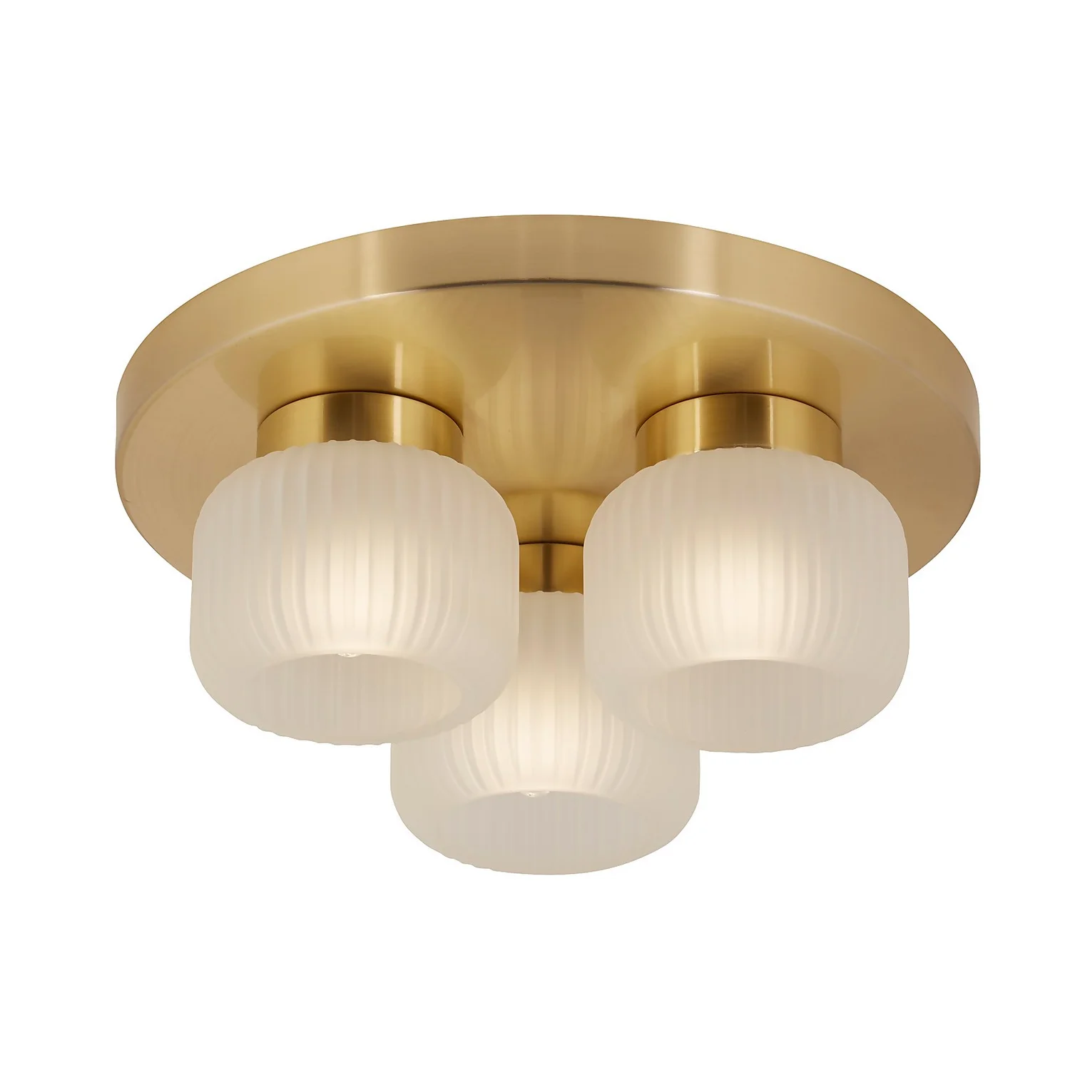 A simple play on art deco style, the Pearl flush ceiling light is the perfect combination of frosted glass and brushed gold finishes.